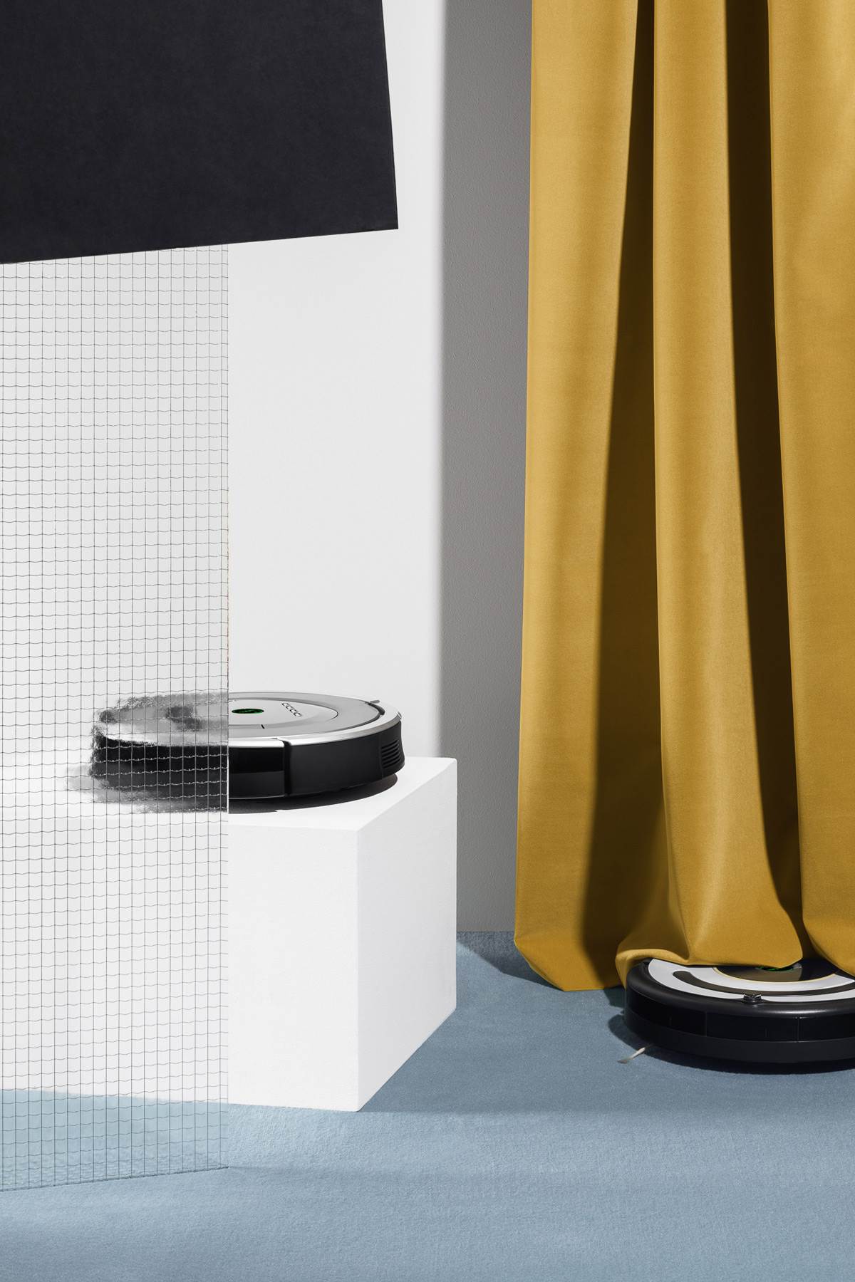 Roomba IRobot is an automatic vacuum cleaner that works by saving your home layout to the cloud. Google Assistant replies to your questions, offers suggestions for activities in your area, reminds you of deadlines and appointments, and has access to all your digital archives. Its microphones are always on: the software is able to learn and adapt, recording the questions and habits of its “master”. Surveillance robots with wi-fi cameras patrol our property as we monitor them from a distance on tablets or smartphones. Amazon dash buttons the size of a USB stick allow us to order a set quantity of a product at any moment: purchases are carried out simply by pressing a button. Amazon Key is a smart lock which can be opened by means of a temporary password, generated by the app, which allows orders to be delivered to your home while you are out. Deliveries can be monitored remotely by the client thanks to a cloud cam. Amazon owns the servers storing video data and the combinations. The same system could easily be extended to include other services such as cleaning, baby and dog-sitting, and renting out rooms or even whole properties. You can now literally leave your house keys with Amazon. The platform is breaking down the final barrier in trade: the home threshold, the membrane between the household and the market place, between a private space and a commercial one. Devices belonging to the Internet of Things and domotica carry out an “inside job”: apparently friendly and “smart”, they smuggle out information about private habits and spaces. Delfino Sisto Legnani’s photographs capture these devices surrounded by typically domestic furnishings (glass, curtains, tiles) to conjure up a surreal metaphysical setting.